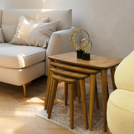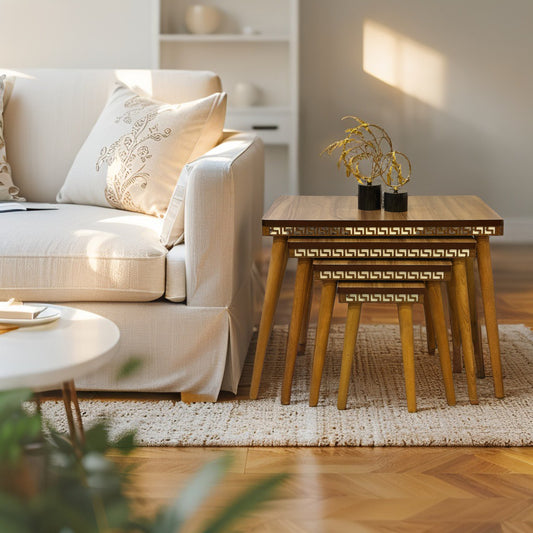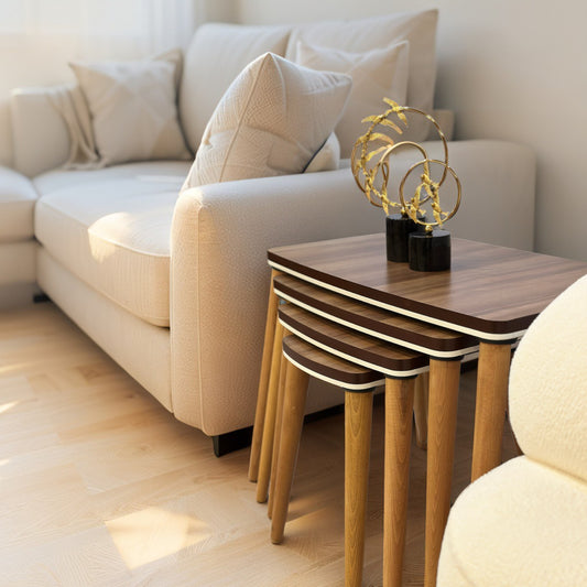 Evmob Lüks 1. Sınıf Mdf Oymalı 4’lü Zigon Sehpa Seti – Krem & Ceviz, Modern Tasarım
