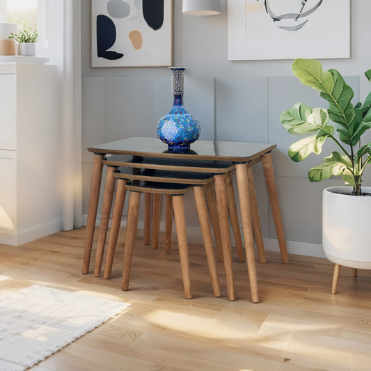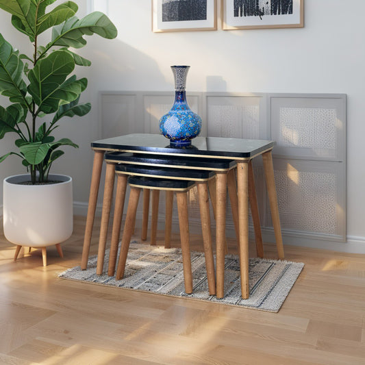 Evmob Lüks 1. Sınıf Mdf Tek Katlı 4’lü Zigon Sehpa Seti – Siyah Mermer & Ceviz, Modern Tasarım